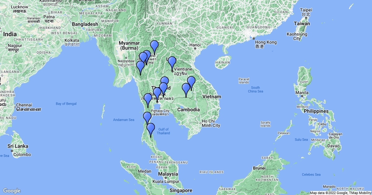 Indicate the following geographic features on the map of Thailand