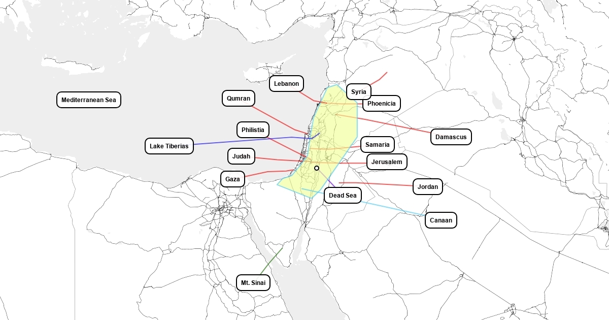 A map of places that are around Isreal.