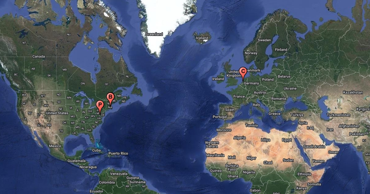 This is a map of john q. adam's travels.