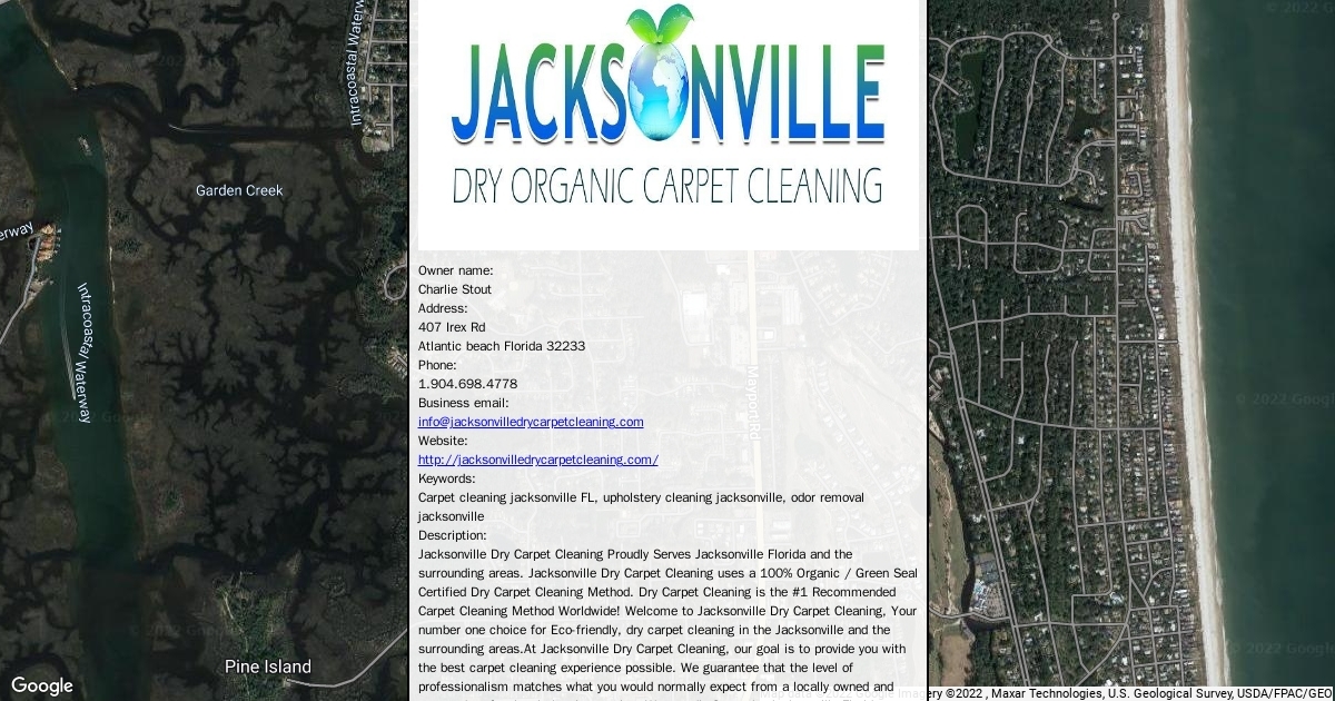 Address: 407 Irex Rd Atlantic beach Florida 32233 Phone: 1.904.698.4778 Business email: info@jacksonvilledrycarpetcleaning.com Website: http://jacksonvilledrycarpetcleaning.com/