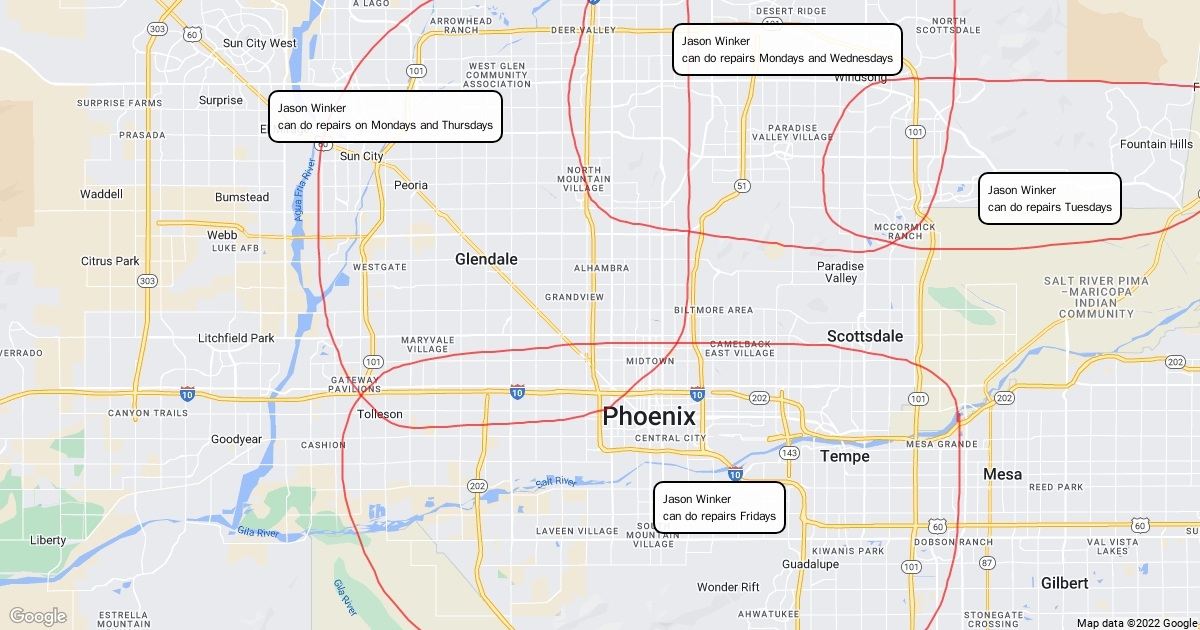 Days Jason is in area for repairs