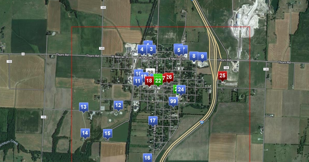 A map of public assets in Jasper, MO.