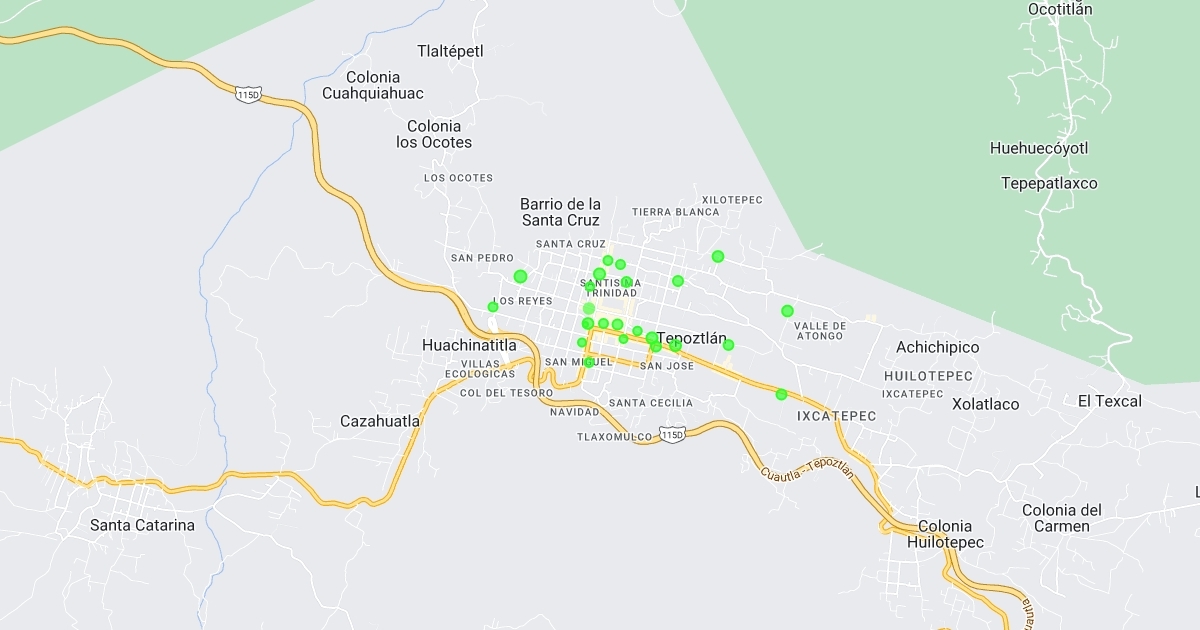 Map showing jewellery shop location in the town of Tepoztlan