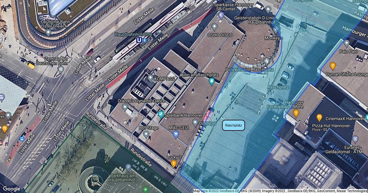 Karte vom Hauptbahnhof und Raschplatz von hannover