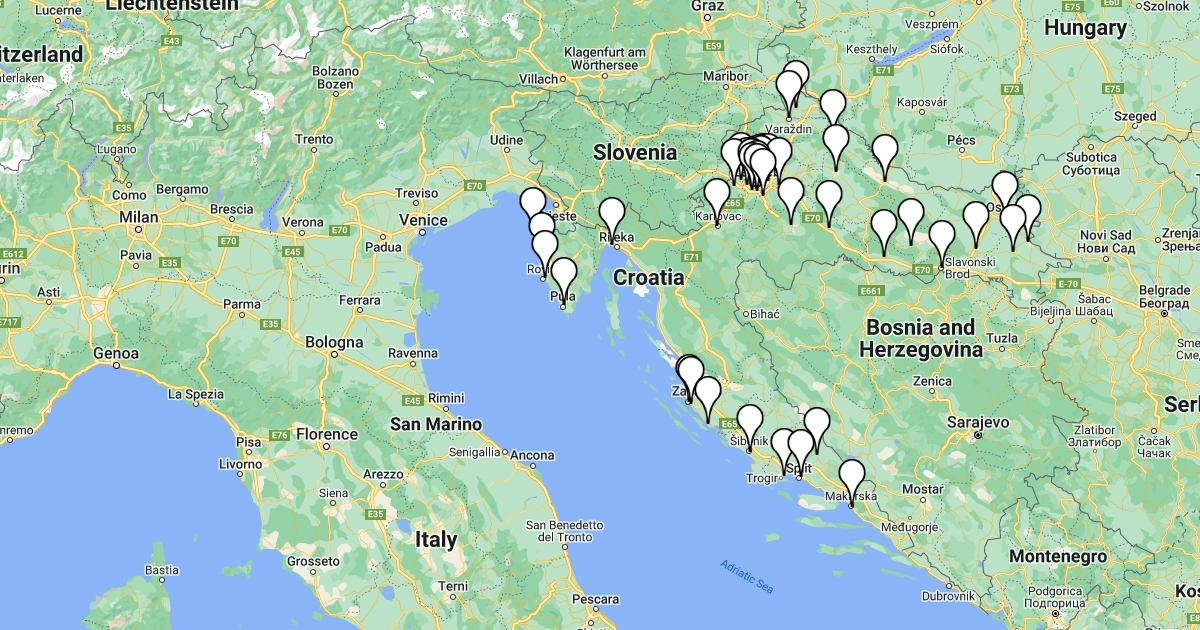 Location of supermarkets kaufland in Croatia