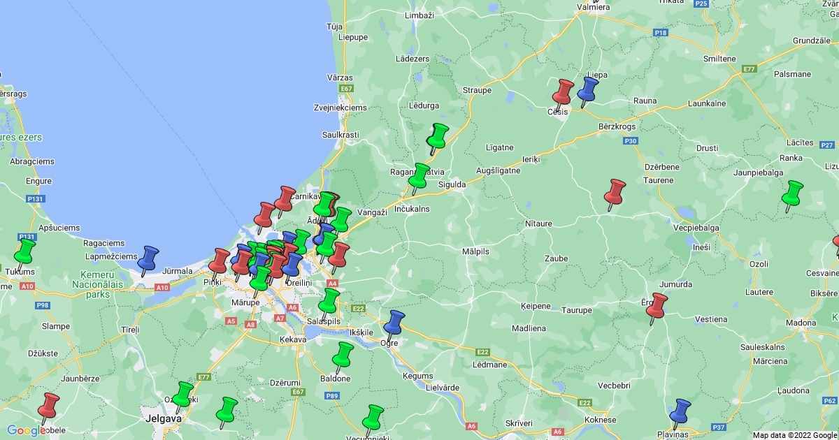 Kopas dalībnieku aptuvenās lokācijas