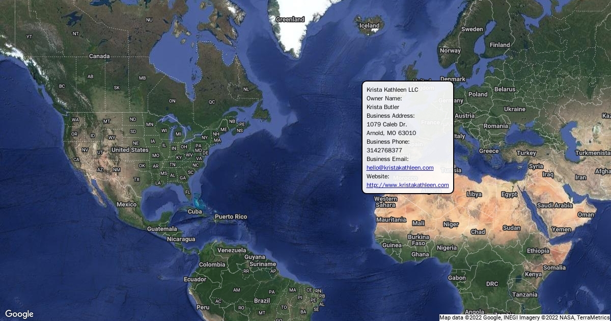 Owner Name: Krista Butler Business Address: 1079 Caleb Dr. Arnold, MO 63010 Business Phone: 3142768377 Business Email: hello@kristakathleen.com Website: http://www.kristakathleen.com
