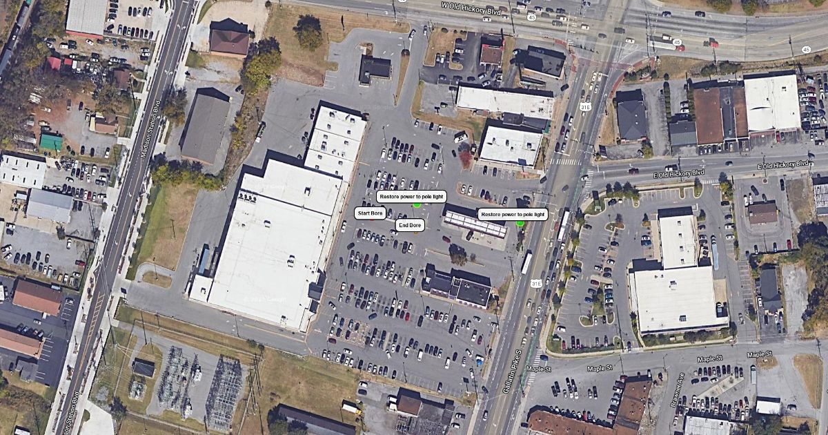 Boring location to restore power to 2 light poles