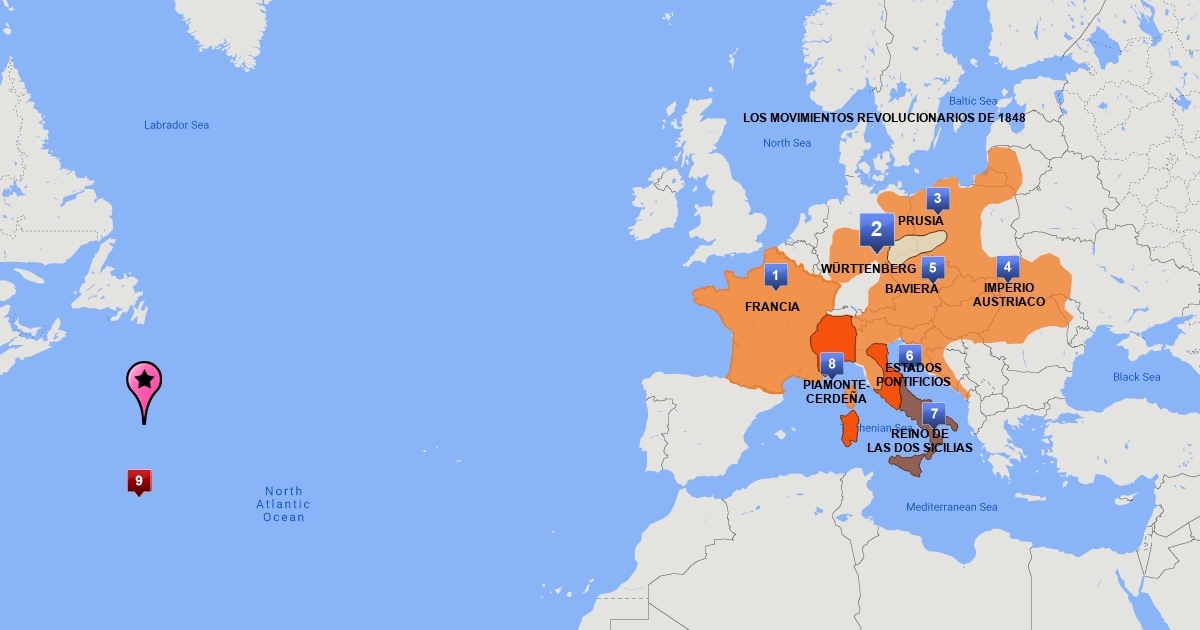 MAPA DE LOS MOVIMIENTOSREVOLUCIONARIOS DEL 1848
