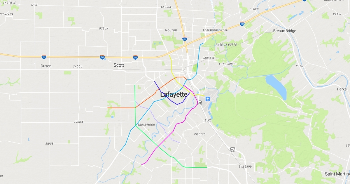 Just my ideas for what a light rail system could look like in Lafayette, LA.