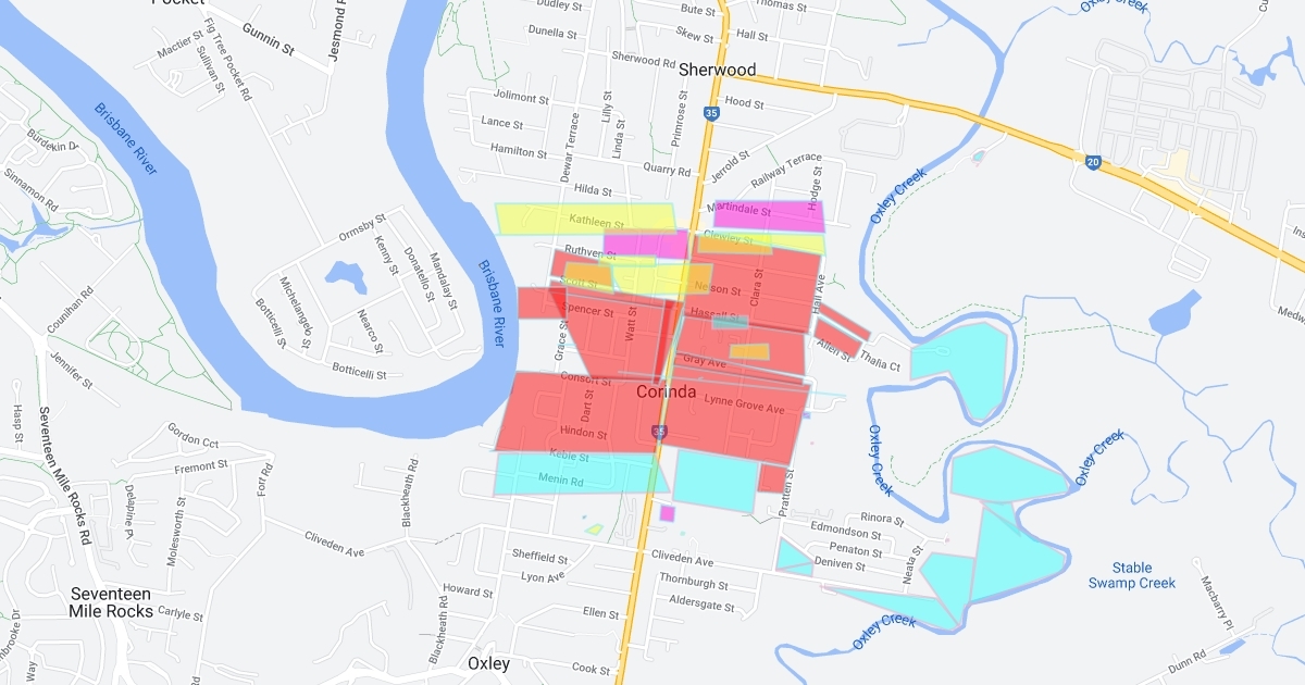 This is the recreational, residential, commercial and educational land uses in Corinda.