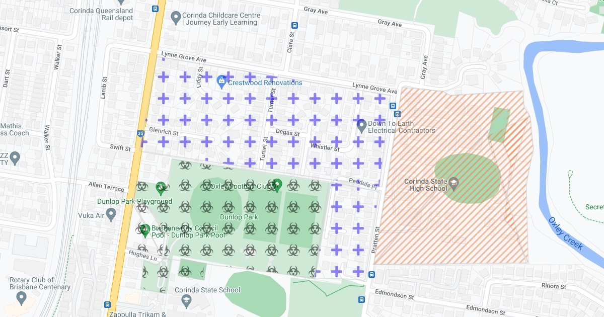 Land use types around Dunlop Park