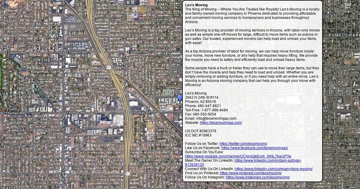 The King of Moving – Where You Are Treated like Royalty! Leo's Moving is a locally and family-owned moving company in Phoenix dedicated to providing affordable and convenient moving services to homeowners and businesses throughout Arizona.
