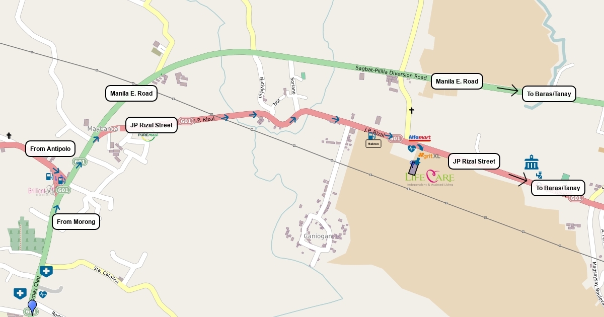 Map of Life Care Independent and Assisted Living Rizal Branch