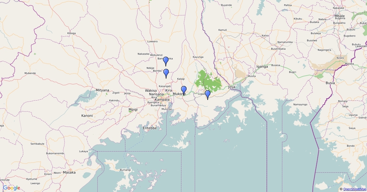 Locations sampled in the commercial growing areas in central Uganda