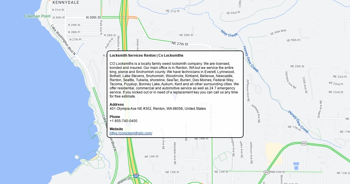 CO Locksmiths is a locally family owed locksmith company. We are licensed, bonded and insured. Our main office is in Renton, WA