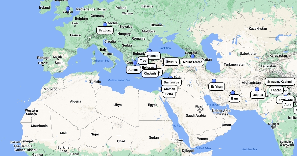 Places on overland trip London Katmandu 1981