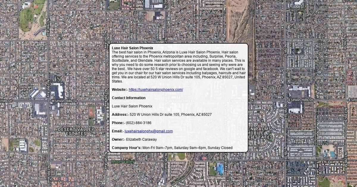 The best hair salon in Phoenix, Arizona is Luxe Hair Salon Phoenix. Hair salon offering services to the Phoenix metropolitan area including, Surprise, Peoria, Scottsdale, and Glendale. Hair salon services are available in many places. This is why you need to do some research prior to choosing us and seeing why were are the best.. We have over 50 5 star reviews on google and facebook. We can't wait to get you in our chair for our hair salon services including balyages, haircuts and hair trims. We are located at 520 W Union Hills Dr suite 105, Phoenix, AZ 85027, United States.