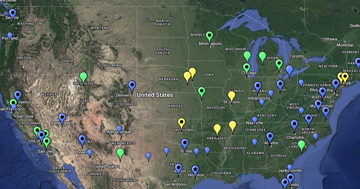 Displays all current and future branch and line haul locations