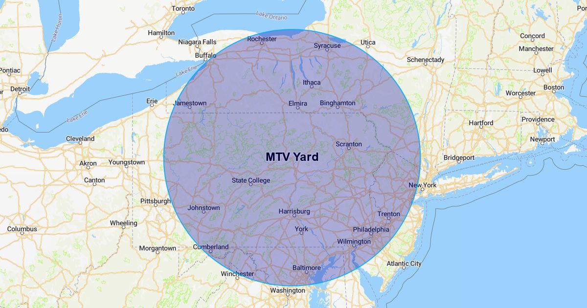 150 Miles Radius from Yard