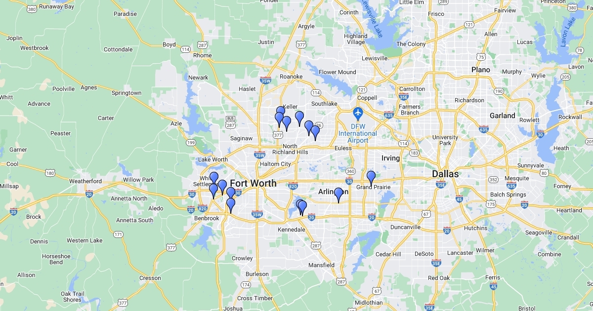 Map of Farmer's markets in Tarrant County