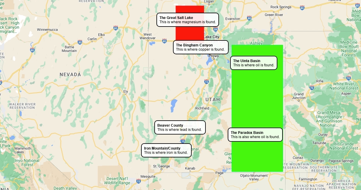 This is a map of some of the natural resources in Utah.
