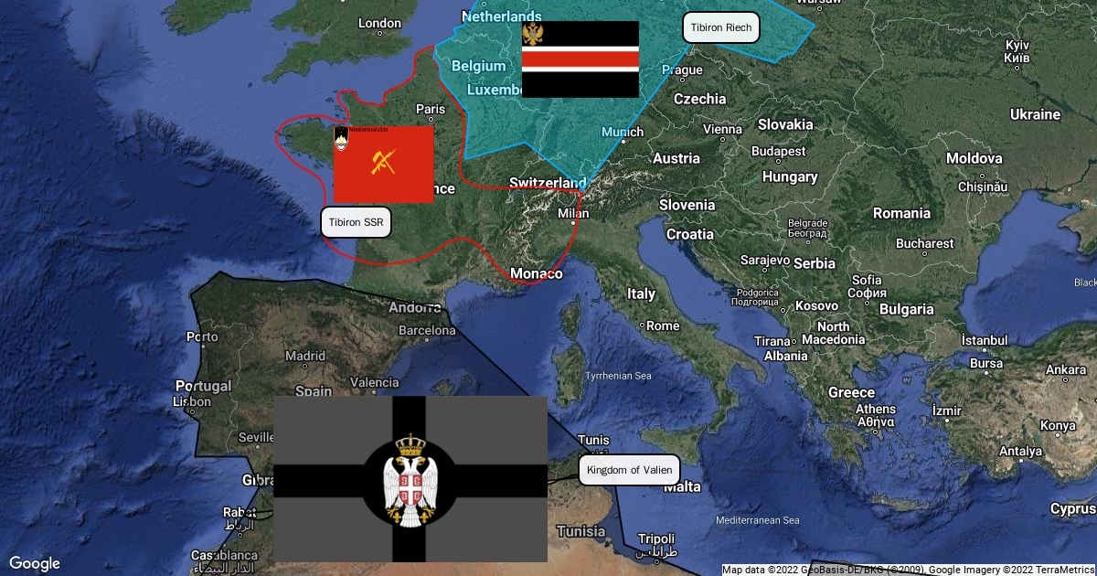 Map of Valien over Modern day Europe