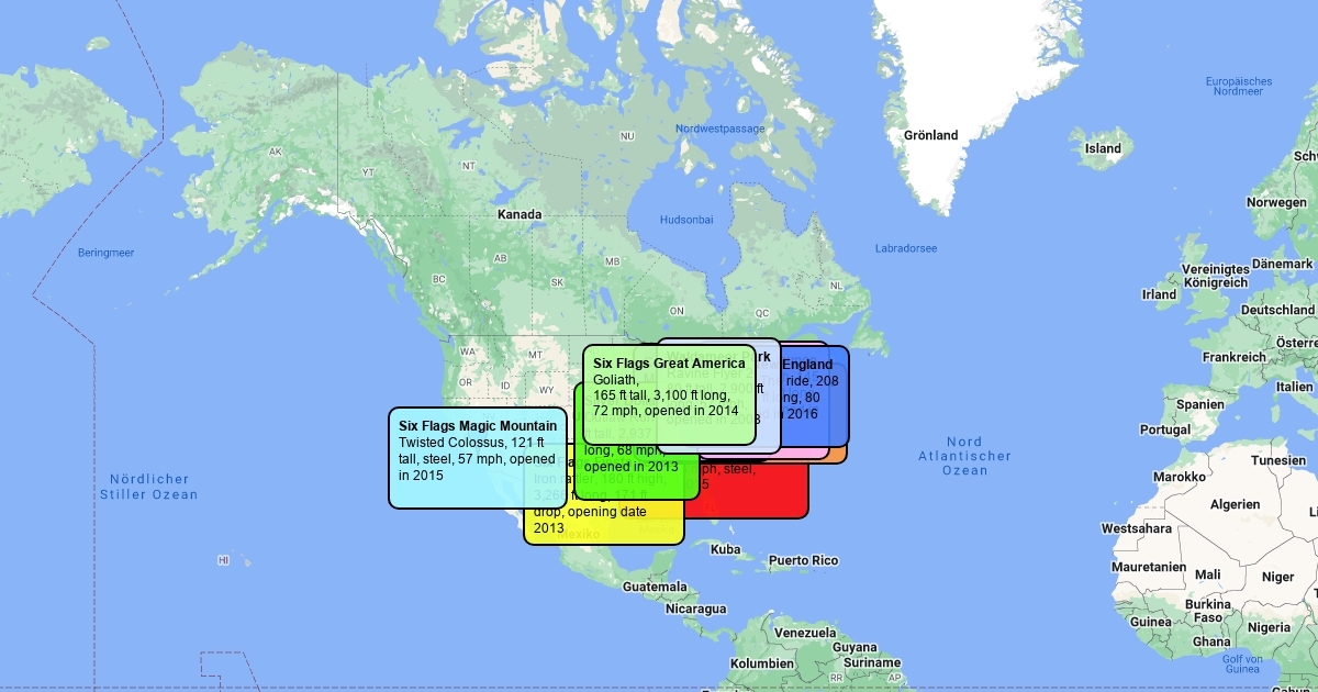 Map of different roller coasters