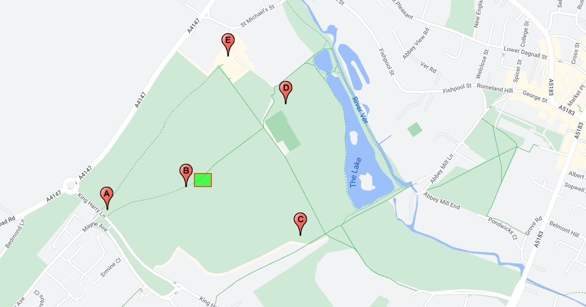 Trial map of St Albans park for orienteering