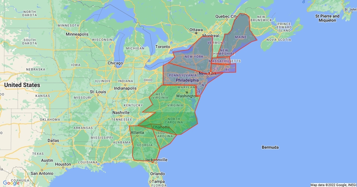 Mapa de las 13 colonias americanas en 1776