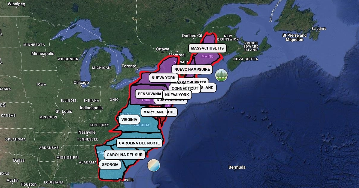 Mapa de las 13 Colonias