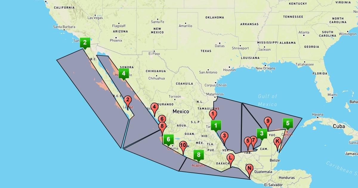 map of naval regions and zones of the Mexican Navy