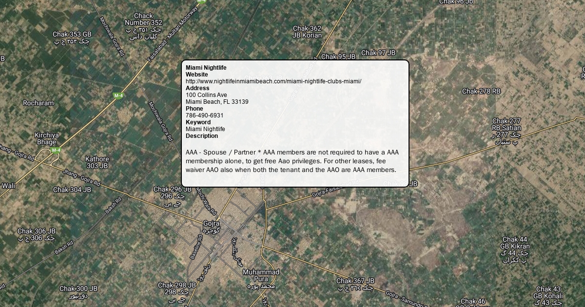 Website http://www.nightlifeinmiamibeach.com/miami-nightlife-clubs-miami/ Address 100 Collins Ave Miami Beach, FL 33139 Phone 786-490-6931 Keyword Miami Nightlife Description AAA - Spouse / Partner * AAA members are not required to have a AAA membership alone, to get free Aao privileges. For other leases, fee waiver AAO also when both the tenant and the AAO are AAA members.