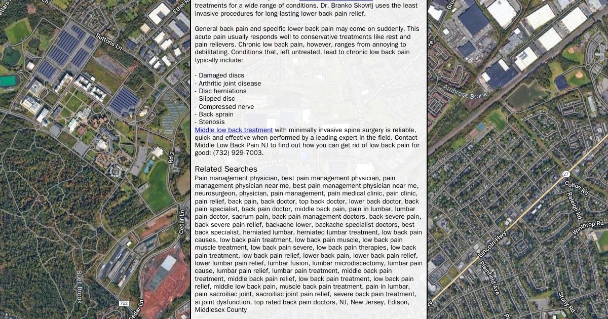 For middle and low back pain relief Middle Low Back Pain NJ offers reliable treatments for a wide range of conditions. Dr. Branko Skovrlj uses the least invasive procedures for long-lasting lower back pain relief.