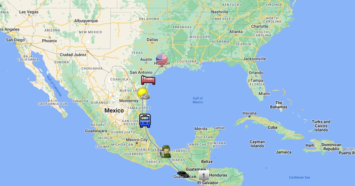This is the map of my journey from El Salvador to Houston, Texas
