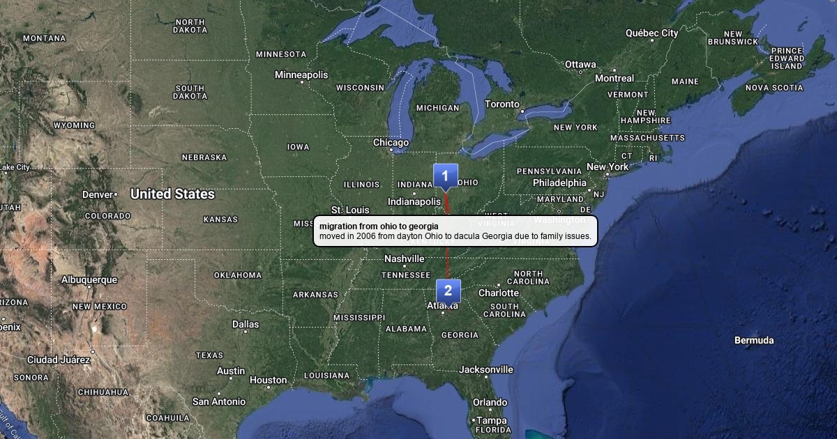 This map shows the movement from Ohio to Georgia from my family.