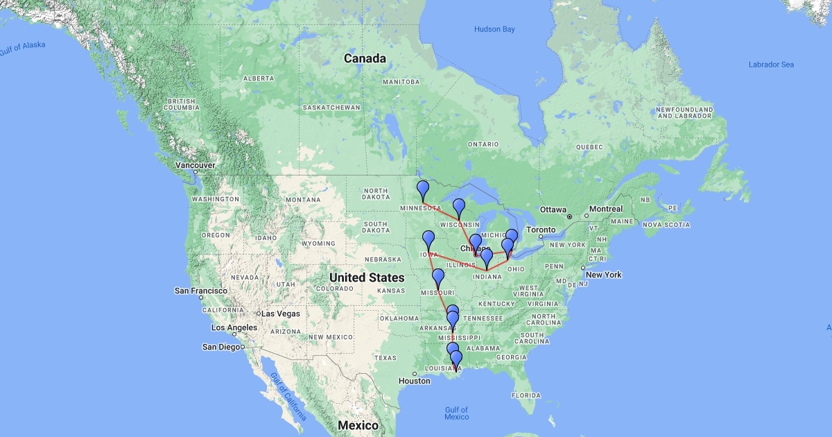He goes up the Mississippi River
