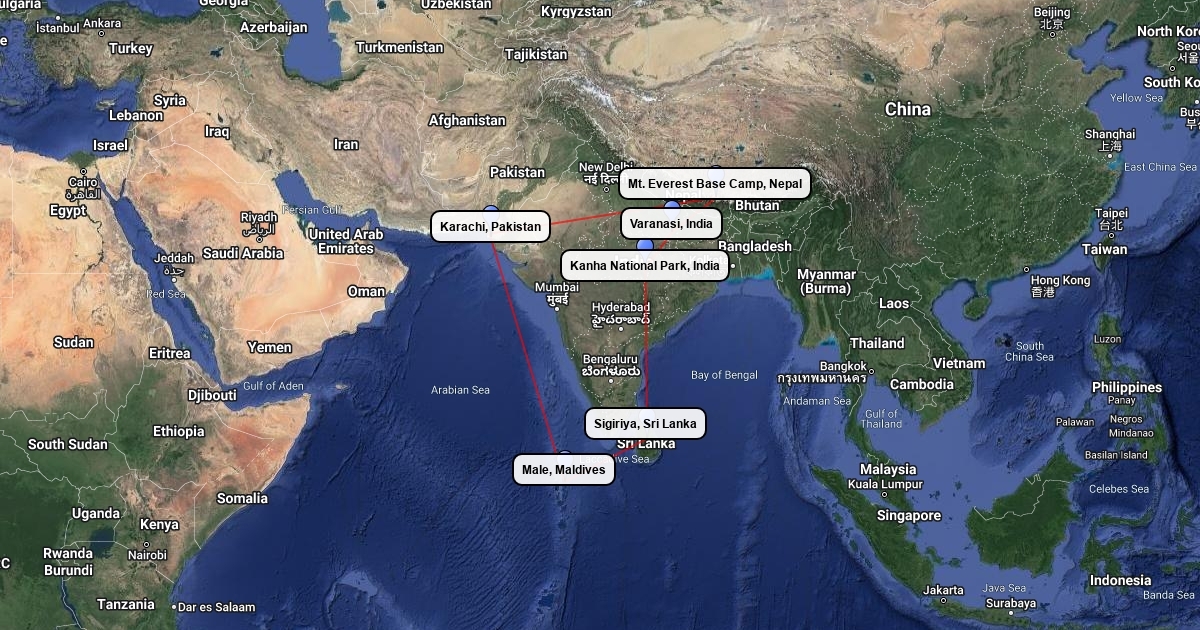 6 cities/places