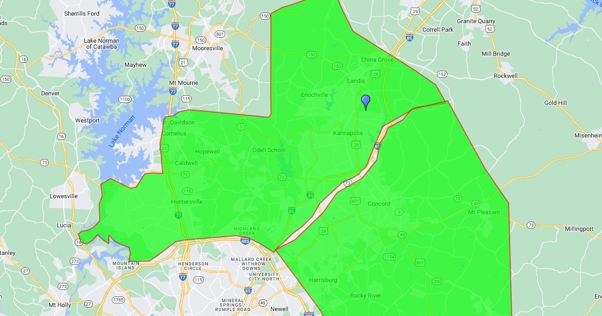 Huntersville, Davidson, Cleveland, Kannapolis, Concord, Midland, Locust, Mt. Pleasant
