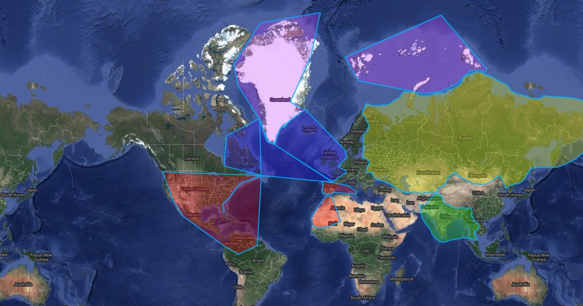 The Nations: The North Sea Empire (Blue), Iberian Union (Red), Indian Empire (Green), Russian Empire (Yellow)