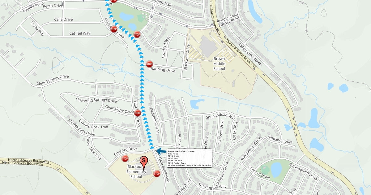 Parade map and route for the North Forney HS HOCO Parade