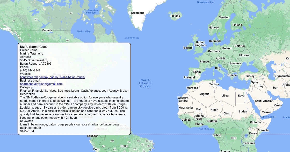 The NMPL-Baton-Rouge service is a suitable option for everyone who urgently needs money. In order to apply with us, it is enough to have a stable income, phone number and bank account. In the "NMPL" company, any resident of Baton Rouge, Louisiana, aged 18 years and older, can quickly receive a microloan from $ 200 to $ 5,000. Are you in a difficult financial situation and can't find a way out? You can quickly find the necessary amount for car repairs, apartment repairs after a fire or flooding, or any other needs within 24 hours.