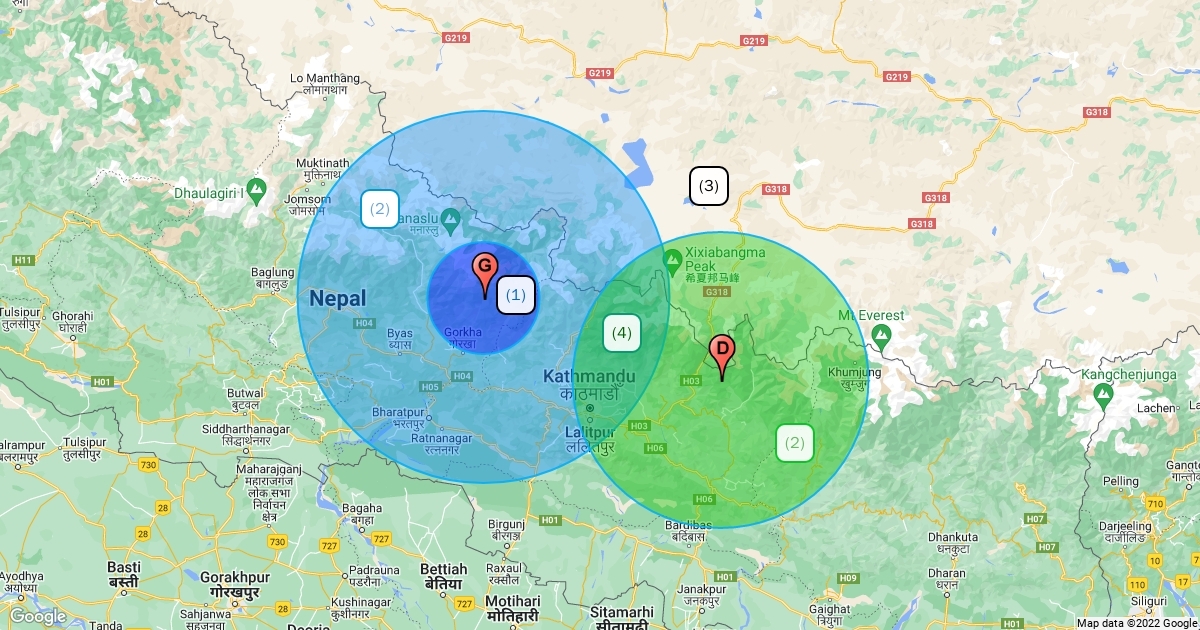 Map earthquakes in Nepal