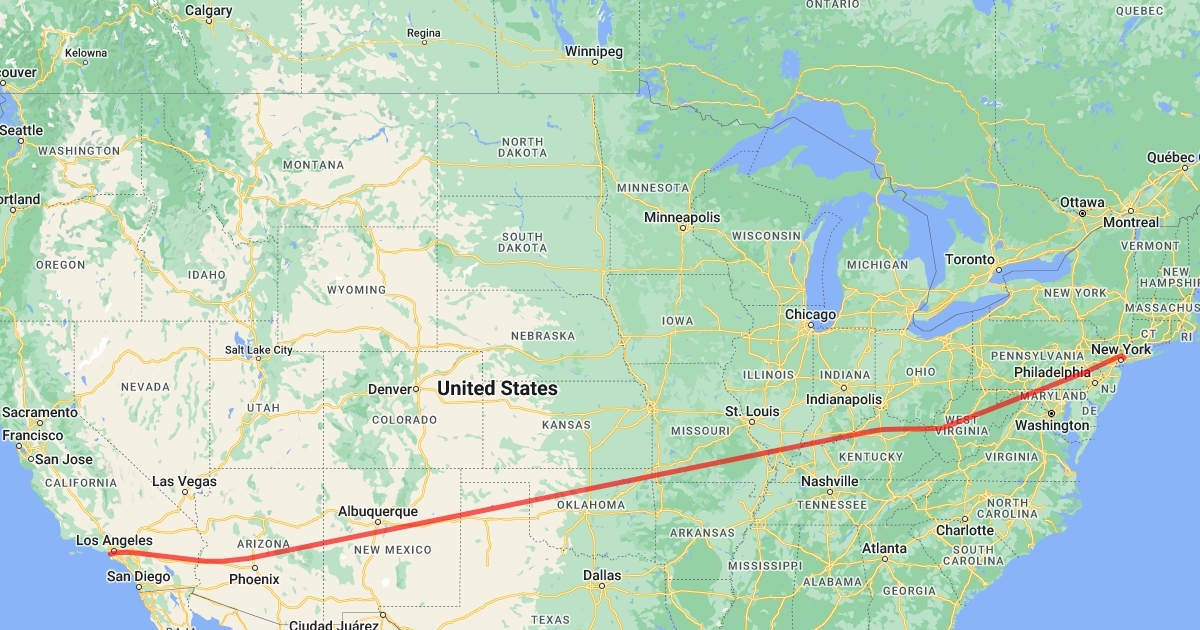 New York City, New York to Los Angeles, California (Flight Path)