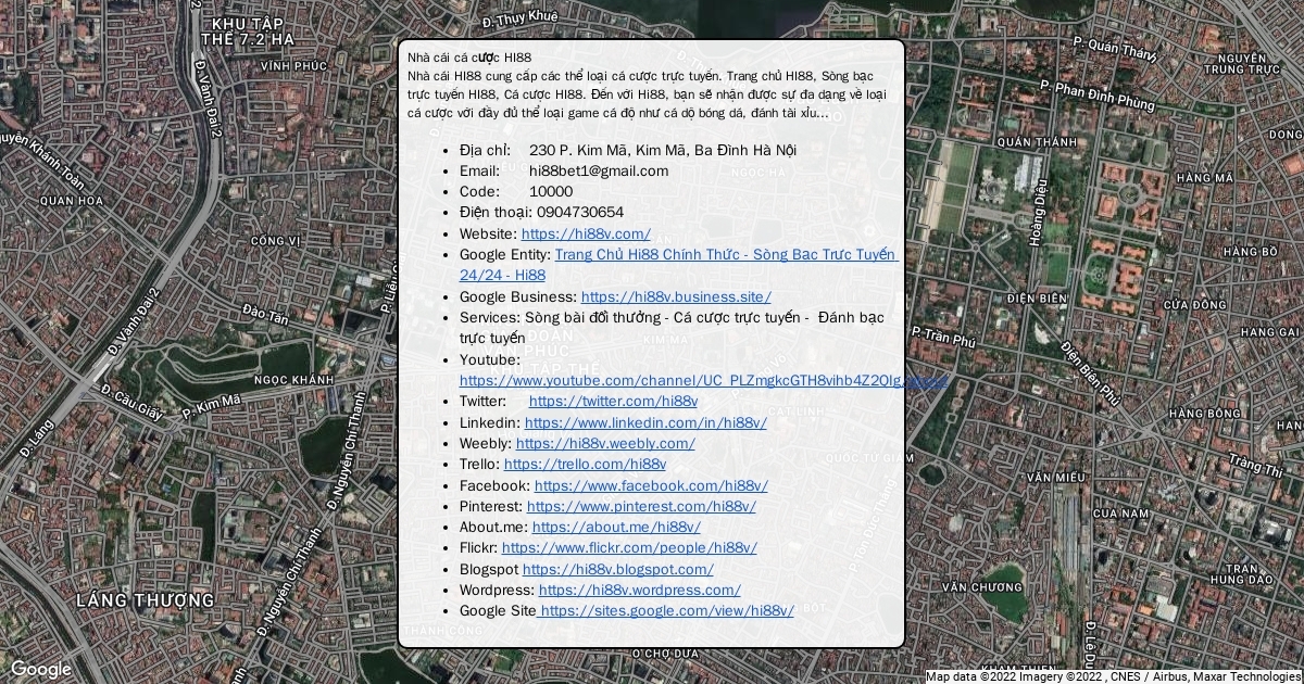 HI88 được biết đến là nhà cái cá cược trực tuyến uy tín hiện nay. Nhà cái HI88 cung cấp các thể loại cá cược như cá cược bóng đá hi88, đánh tài xỉu hi88, xóc đĩa hi88...230 P. Kim Mã, Kim Mã, Ba Đình Hà Nội, Email: hi88bet1@gmail.com, SDT: 0904730654