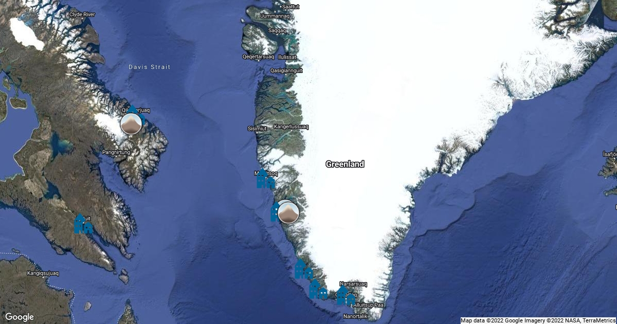Northern Canadian and Greenlandic settlements and national parks, includes places in Greenland, Nunavut, Manitoba and Quebec.