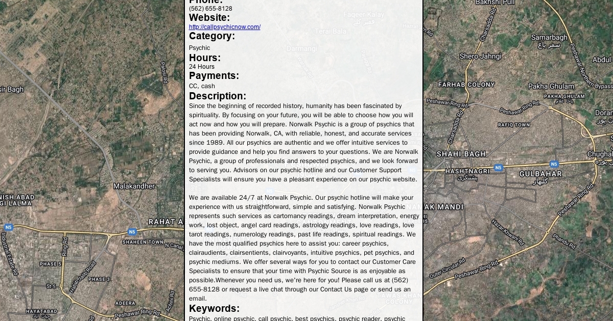 Address: Sycamore St Norwalk, CA 90651 Phone: (562) 655-8128 Website: http://callpsychicnow.com/ Category: Psychic Hours: 24 Hours Payments: CC, cash