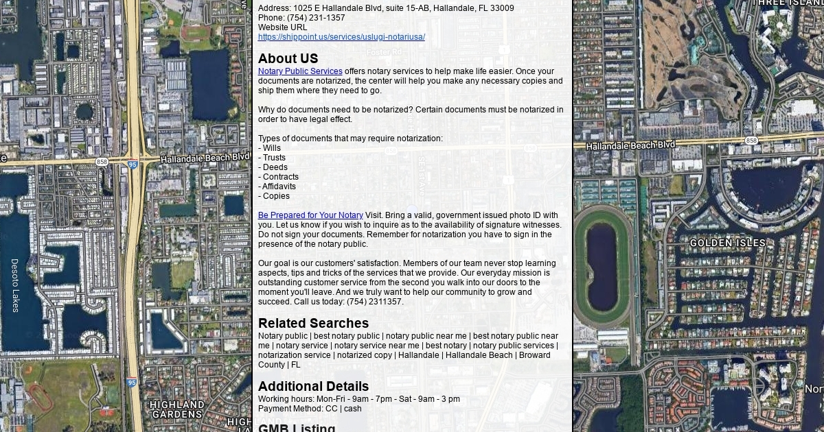 Address: 1025 E Hallandale Blvd, suite 15-AB, Hallandale, FL 33009 Phone: (754) 231-1357 Website URL https://shippoint.us/services/uslugi-notariusa/