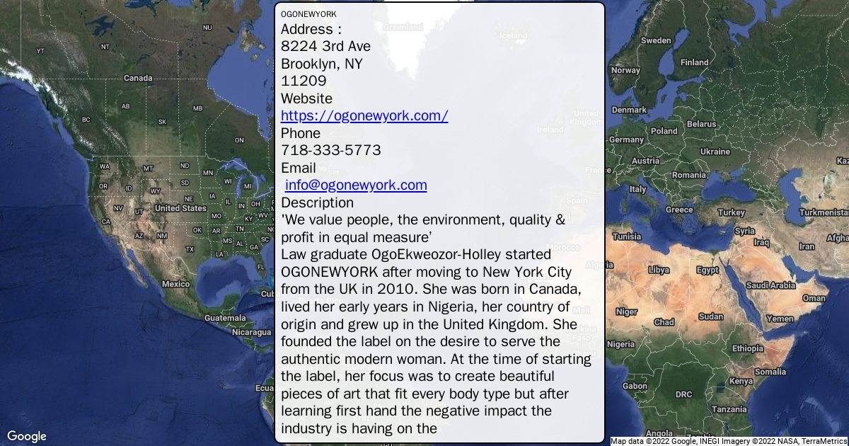 Law graduate OgoEkweozor-Holley started OGONEWYORK after moving to New York City from the UK in 2010. She was born in Canada, lived her early years in Nigeria, her country of origin and grew up in the United Kingdom. She founded the label on the desire to serve the authentic modern woman. At the time of starting the label, her focus was to create beautiful pieces of art that fit every body type but after learning first hand the negative impact the industry is having on the environment, her mission evolved. ‘It's about creating beautiful pieces that are kind to the eco system. People , animals and the environment should not be sacrificed for style’ says OgoEkweozor-Holley