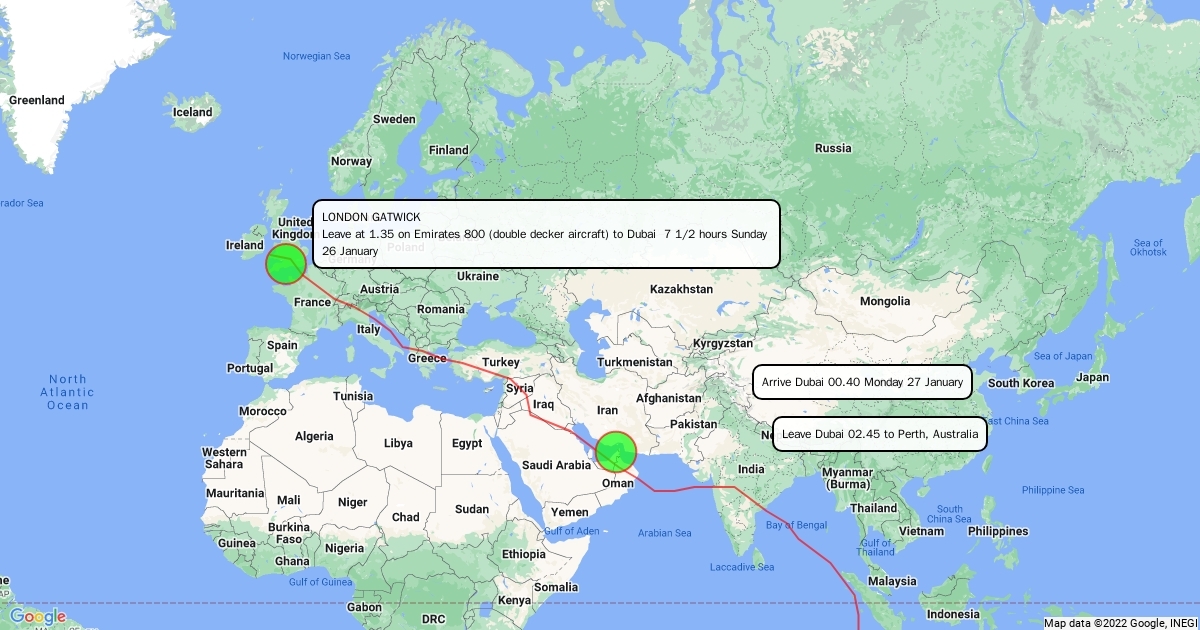 Route from LGW to Auckland